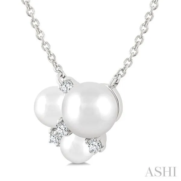 (319) 752-31964 MM, 5 MM & 6 MM Cultured Pearl and 1/20 Ctw Round Cut Diamond Fashion Pendant With Chain in 10K White Gold