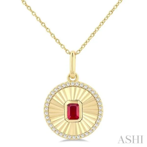 (319) 752-31964X3 MM Octagon Shape Ruby and 1/8 Ctw Single Cut Diamond Precious Fluted Medallion Pendant in 10K Yellow Gold with Chain