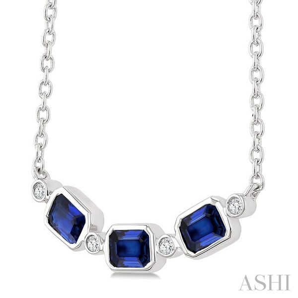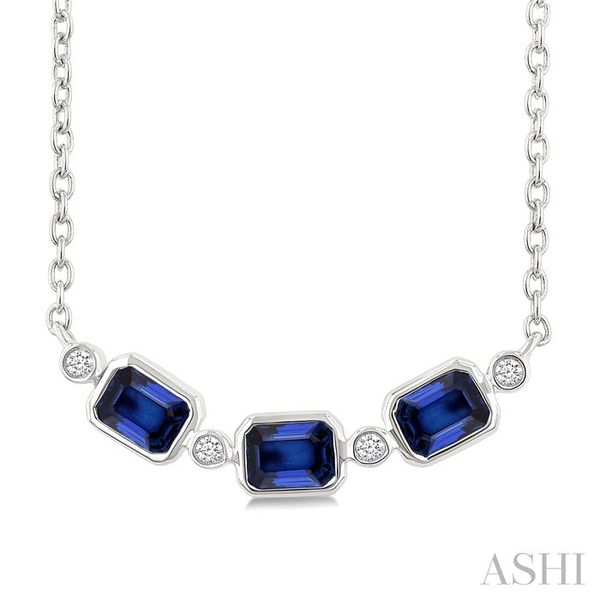 4X3 MM Octagon Shape Sapphire and 1/50 Ctw Bezel-Set Round Cut Diamond Precious Fahion Necklace in 10K White Gold Image 3 Becker's Jewelers Burlington, IA