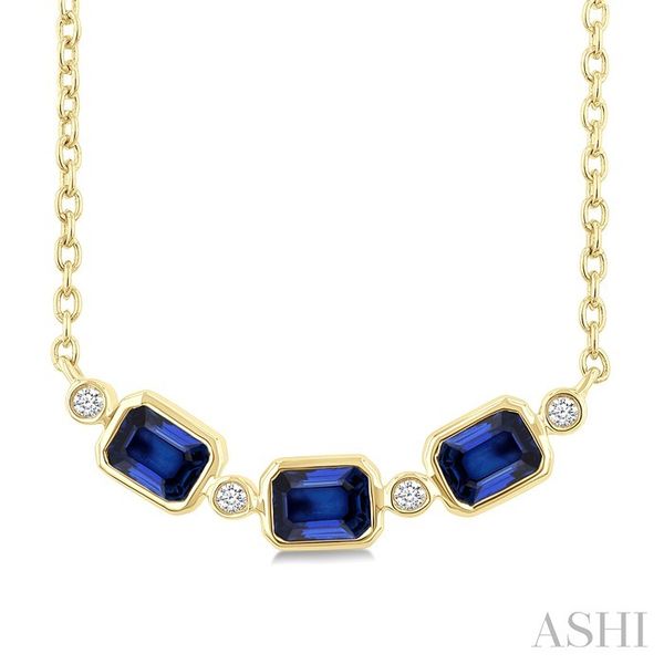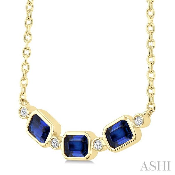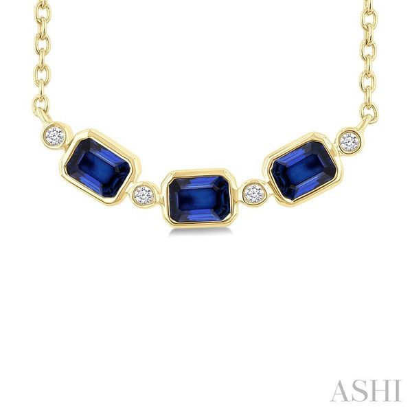 4X3 MM Octagon Shape Sapphire and 1/50 Ctw Bezel Set Round Cut Diamond Precious Fahion Necklace in 10K Yellow Gold Image 3 Becker's Jewelers Burlington, IA