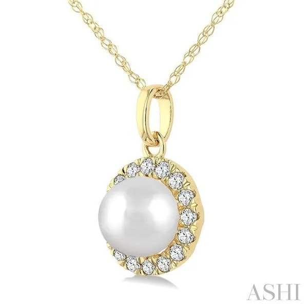 (319) 752-31965 MM Cultured White Pearl and 1/20 Ctw Single Cut Diamond Halo Pendant With Chain in 14K Yellow Gold