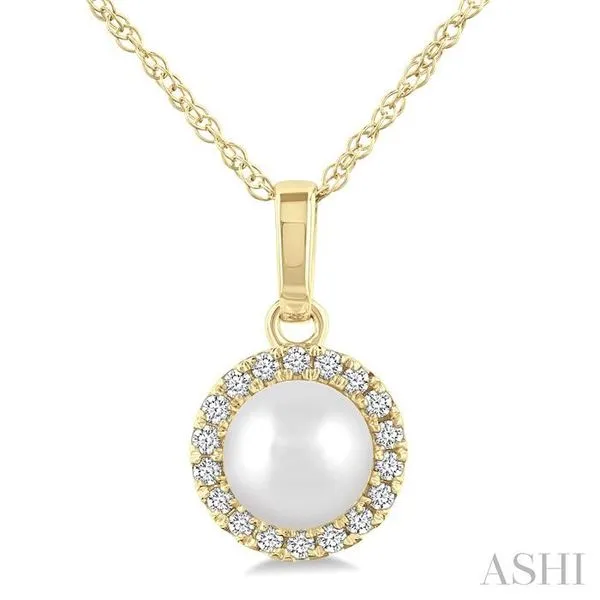(319) 752-31965 MM White Cultured Pearl and 1/20 Ctw Single Cut Diamond Halo Pendant With Chain in 10K Yellow Gold