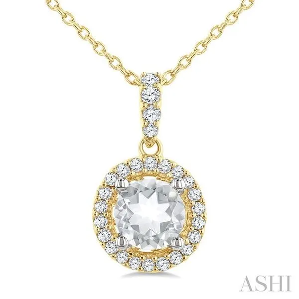 (319) 752-31965.0MM White Topaz and 1/10 Ctw Round Cut Diamond Halo Semi Precious Pendant With Chain in 14K Yellow and White Gold
