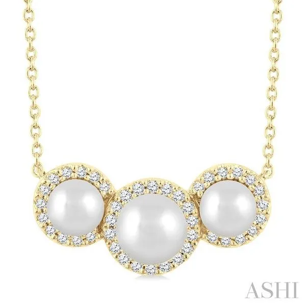 (319) 752-31965MM & 4MM Cultured Pearl and 1/6 Ctw Round Cut Diamond Halo Pendant With Chain in 14K Yellow Gold