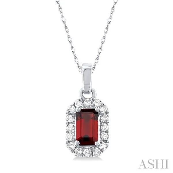 (319) 752-31965x3 MM Octagonal Shape Garnet and 1/20 Ctw Single Cut Diamond Halo Semi-Precious Pendant with Chain in 10K White Gold
