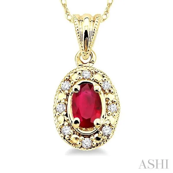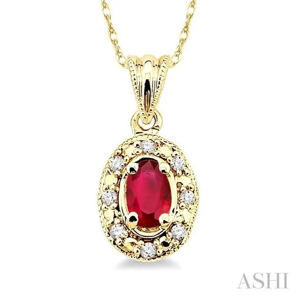 (319) 752-31965x3 MM Oval Shape Ruby and 1/20 Ctw Single Cut Diamond Pendant in 14K Yellow Gold with Chain