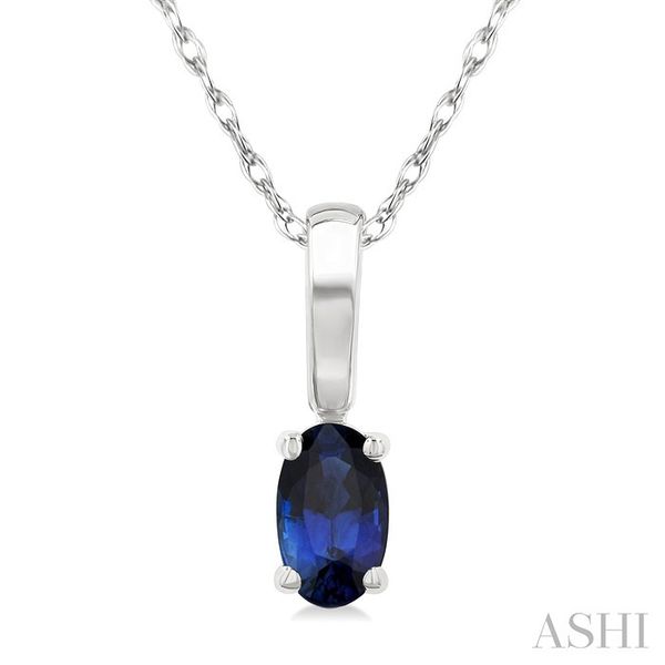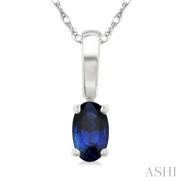 5X3 MM Oval Shape Sapphire Precious Solitaire Pendant With Chain in 10K White Gold Image 2 Becker's Jewelers Burlington, IA