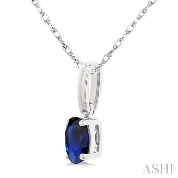 5X3 MM Oval Shape Sapphire Precious Solitaire Pendant With Chain in 10K White Gold Image 3 Becker's Jewelers Burlington, IA