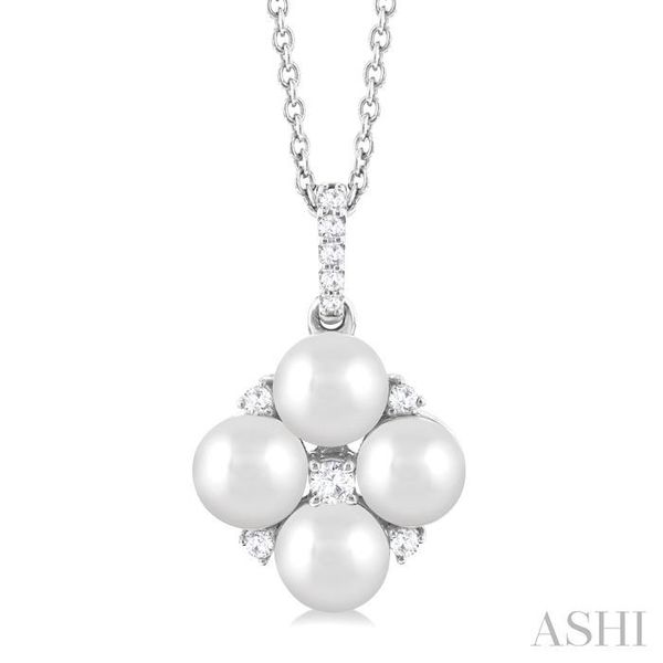 5x5 MM Round Shape Floral Cultured Pearls and 1/10 Ctw Round Cut Diamond Fashion Pendant With Chain in 10K White Gold Image 2 Becker's Jewelers Burlington, IA