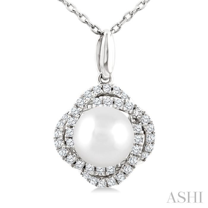 (319) 752-31966 MM Cultured Pearl and 1/6 Ctw Single Cut Diamond Petite Fashion Pendant With Chain in 10K White Gold