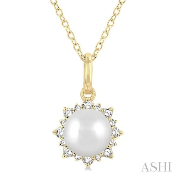 (319) 752-31966 MM Round Shape Cultured Pearl and 1/10 Ctw Petite Sun Round Cut Diamond Fashion Pendant With Chain in 10K Yellow Gold