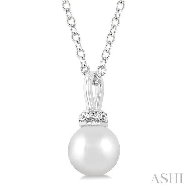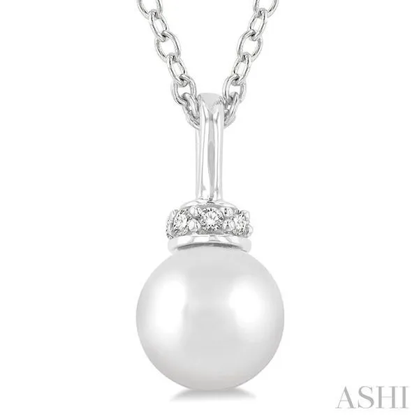 (319) 752-31966 MM Round Shape Cultured Pearl and 1/20 Ctw Petite Round Cut Diamond Crown Fashion Pendant With Chain in 10K White Gold