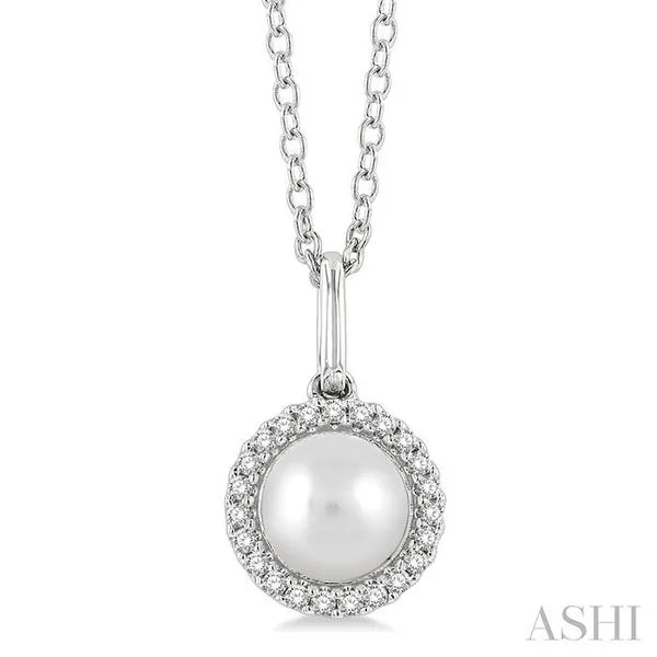 (319) 752-31966 MM Round Shape Cultured Pearl and 1/20 Ctw Petite Round Cut Diamond Halo Fashion Pendant With Chain in 10K White Gold