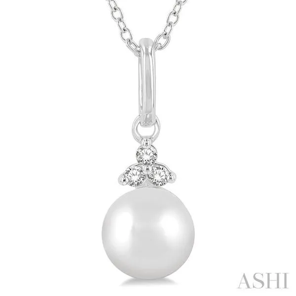 (319) 752-31966 MM Round Shape Cultured Pearl and 1/50 Ctw Round Cut Diamond Petite Fashion Pendant With Chain in 10K White Gold