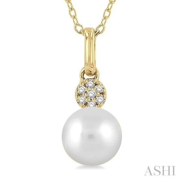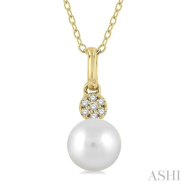 (319) 752-31966 MM Round Shape Cultured Pearl and 1/50 Ctw Round Cut Diamond Petite Fashion Pendant With Chain in 10K Yellow Gold