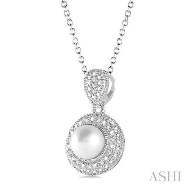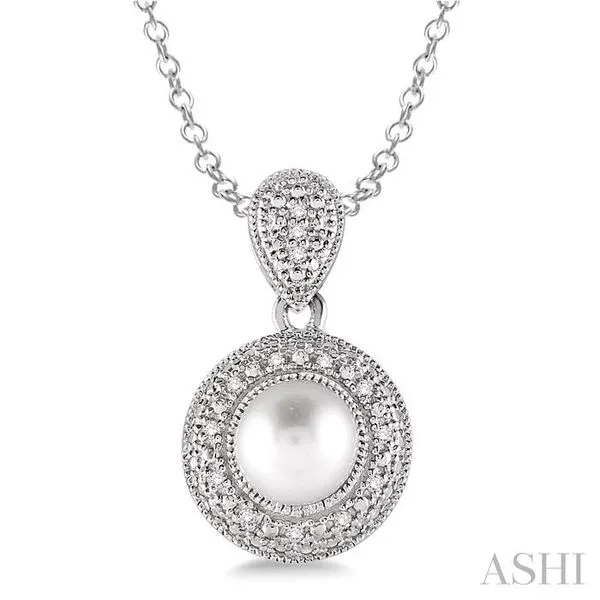 (319) 752-31966.5x6.5 MM Cultured Pearl and 1/20 Ctw Single Cut Diamond Pendant in Sterling Silver with Chain