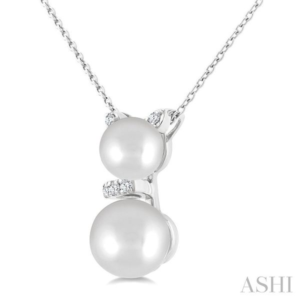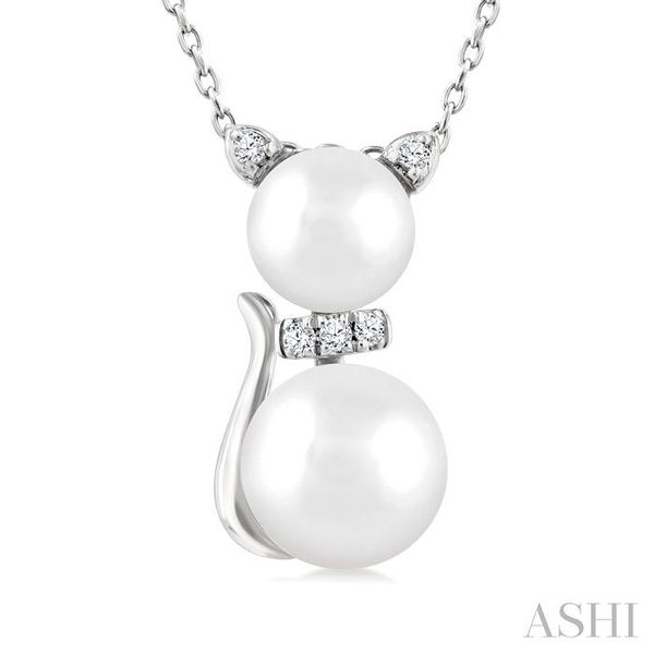 6&7 MM Cultured Pearl and 1/20 Ctw Round Cut Diamond Cat Shape Petite Fashion Pendant With Chain in 10K White Gold Image 2 Becker's Jewelers Burlington, IA