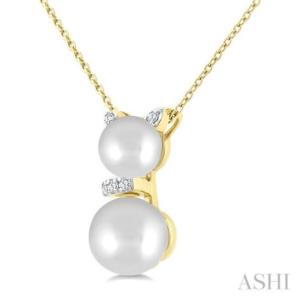 6&7 MM Cultured Pearl and 1/20 Ctw Round Cut Diamond Cat Shape Petite Fashion Pendant With Chain in 10K Yellow Gold Image 2 Becker's Jewelers Burlington, IA