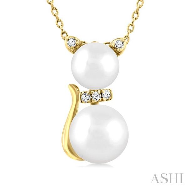 6&7 MM Cultured Pearl and 1/20 Ctw Round Cut Diamond Cat Shape Petite Fashion Pendant With Chain in 10K Yellow Gold Image 3 Becker's Jewelers Burlington, IA