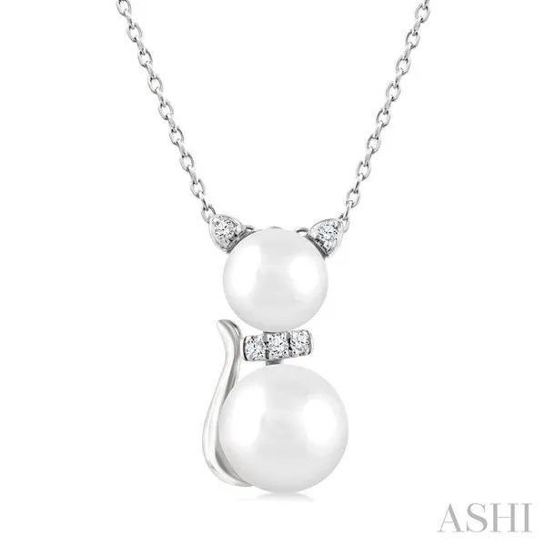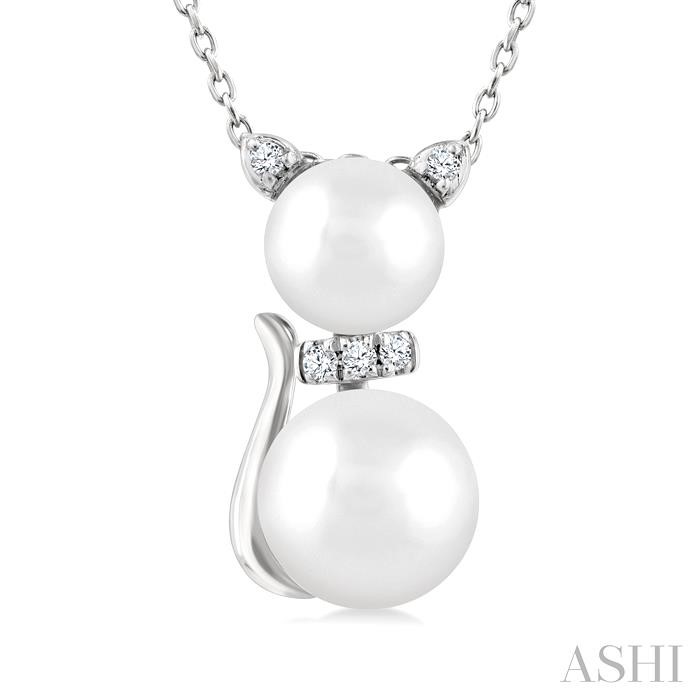 (319) 752-31966&7 MM Cultured Pearl and 1/20 Ctw Single Cut Diamond Cat Shape Petite Fashion Pendant With Chain in 10K White Gold