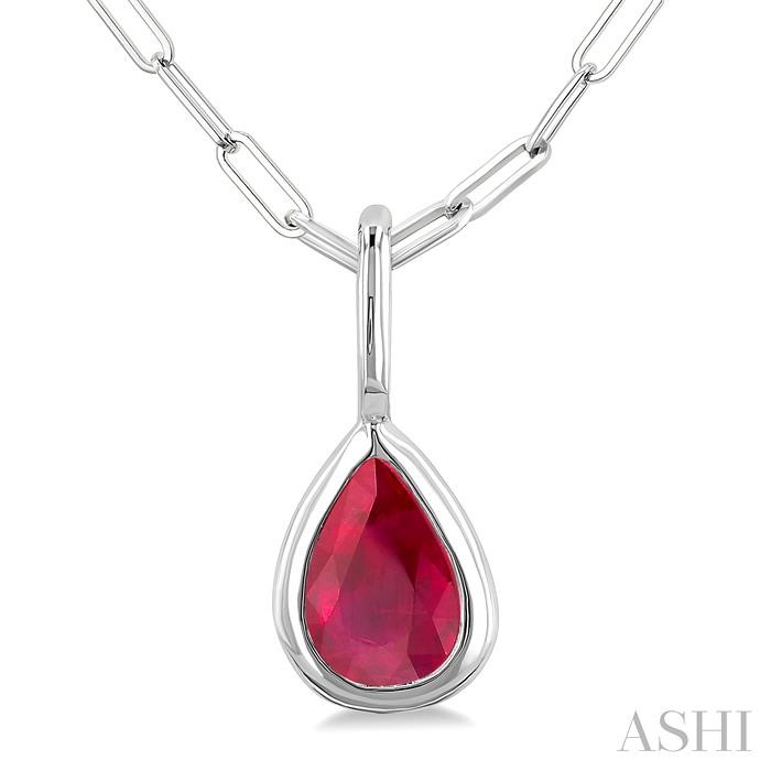 (319) 752-31966x4 MM Bezel Set Pear Cut Ruby Precious Fashion Pendant With Paperclip Chain in 10K White Gold