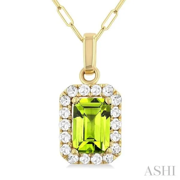 (319) 752-31966x4 MM Octagonal Shape Peridot and 1/6 Ctw Round Cut Diamond Halo Semi-Precious Pendant with Chain in 14K Yellow Gold