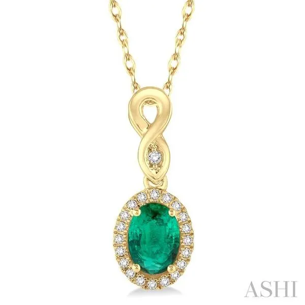 (319) 752-31966x4 MM Oval Cut Emerald and 1/10 Ctw Round Cut Diamond Pendant in 10K Yellow Gold with Chain