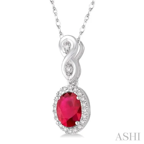 (319) 752-31966x4 MM Oval Cut Ruby and 1/10 Ctw Round Cut Diamond Pendant in 14K White Gold with Chain