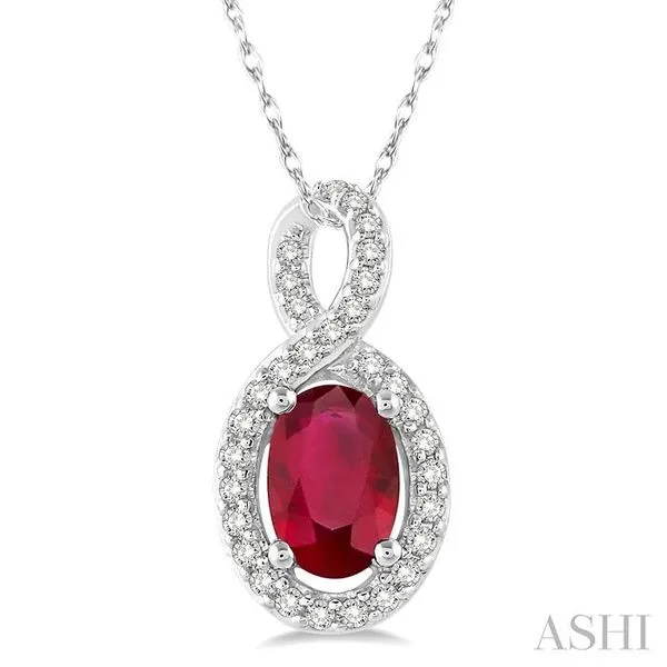 (319) 752-31966x4 MM Oval Cut Ruby and 1/10 Ctw Round Cut Diamond Pendant in 14K White Gold with Chain