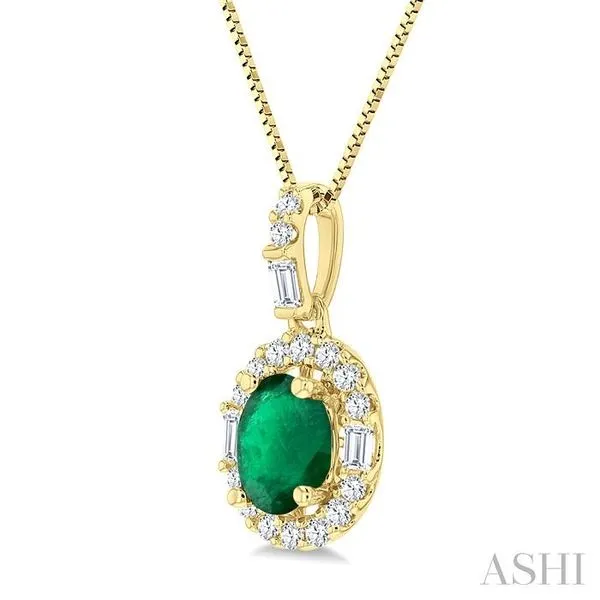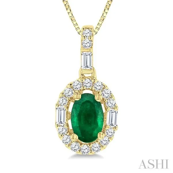 (319) 752-31966x4 MM Oval Shape Emerald and 1/4 Ctw Diamond Precious Pendant in 14K Yellow Gold with Chain