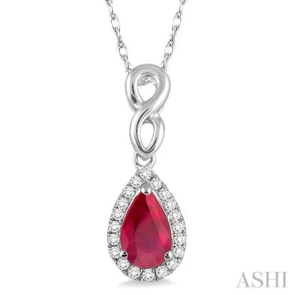 (319) 752-31966x4 MM Pear Shape Ruby and 1/10 Ctw Round Cut Diamond Pendant in 10K White Gold with Chain