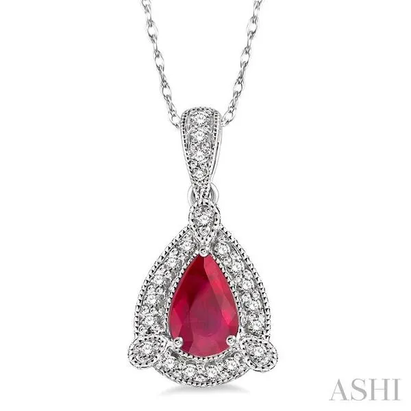 (319) 752-31966x4 MM Pear Shape Ruby and 1/10 Ctw Round Cut Diamond Pendant in 14K White Gold with Chain