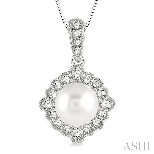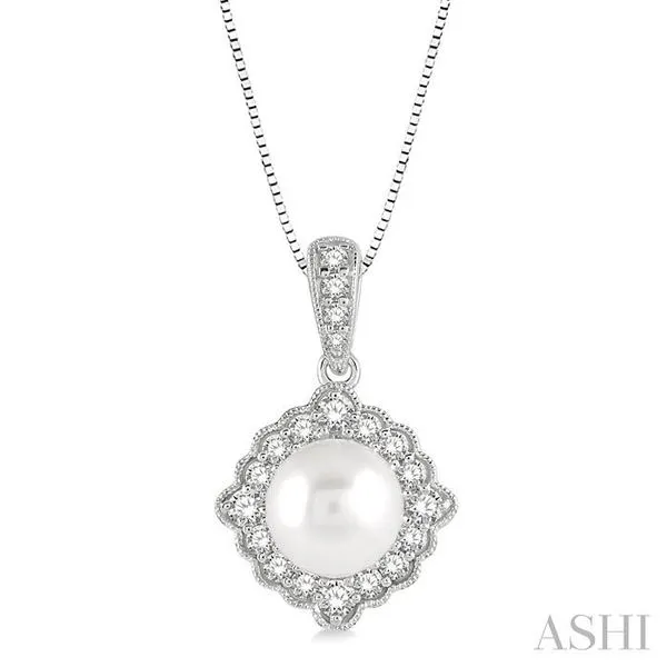 (319) 752-31967 MM Cultured Pearl and 1/5 Ctw Round Cut Diamond Halo Pendant With Chain in 10K White Gold