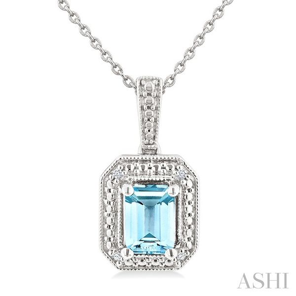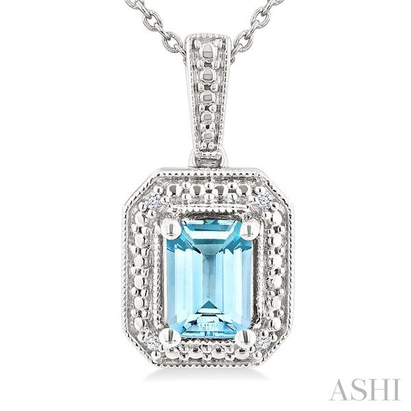 7X5 MM Octagon Shape Aquamarine and 1/50 Ctw Round Cut Diamond Semi-Precious Pendant With Chain in Sterling Silver Image 2 Becker's Jewelers Burlington, IA