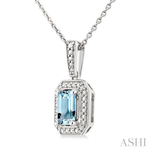 7X5 MM Octagon Shape Aquamarine and 1/50 Ctw Round Cut Diamond Semi-Precious Pendant With Chain in Sterling Silver Image 3 Becker's Jewelers Burlington, IA