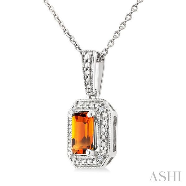 7X5 MM Octagon Shape Citrine and 1/50 Ctw Round Cut Diamond Semi-Precious Pendant With Chain in Sterling Silver Image 3 Becker's Jewelers Burlington, IA