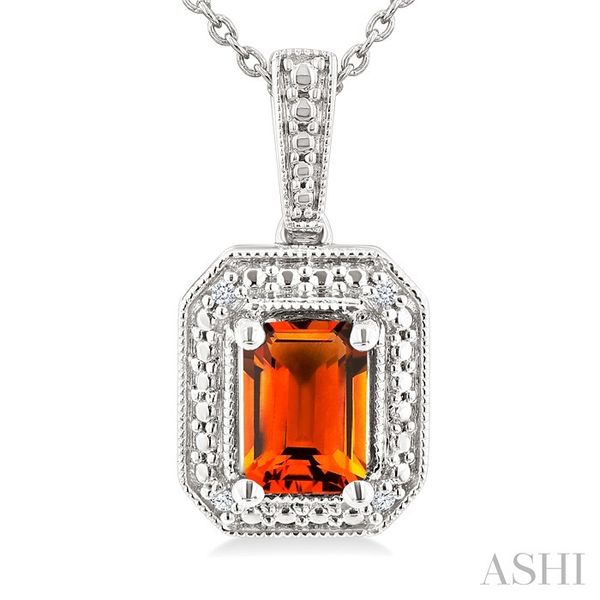 7X5 MM Octagon Shape Citrine and 1/50 Ctw Round Cut Diamond Semi-Precious Pendant With Chain in Sterling Silver Image 2 Becker's Jewelers Burlington, IA