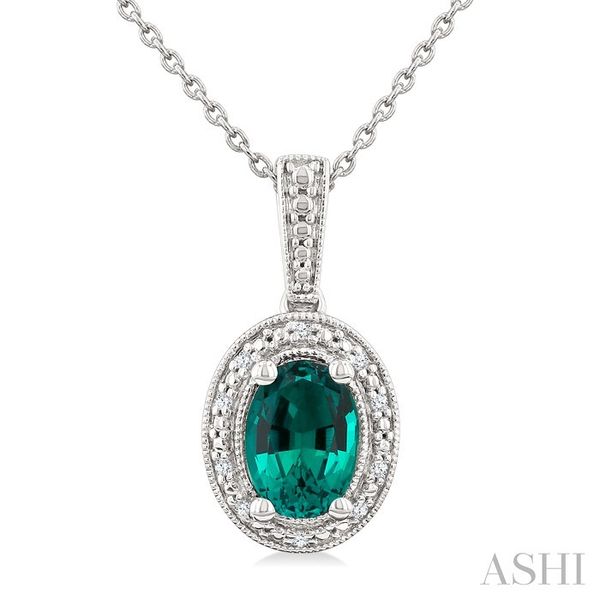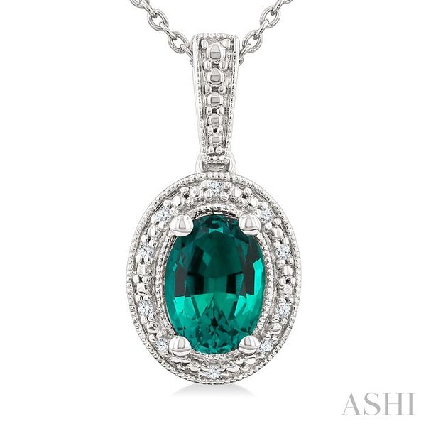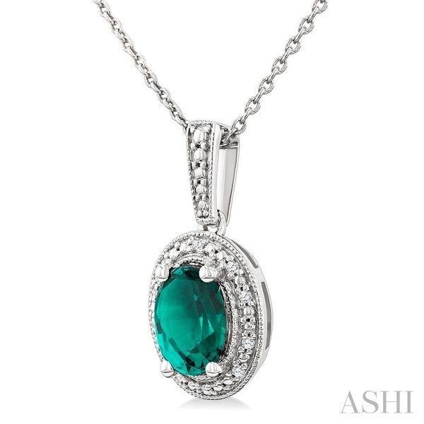 7X5 MM Oval Shape Lab-Created Emerald and 1/50 Ctw Round Cut Diamond Precious Pendant With Chain in Sterling Silver Image 3 Becker's Jewelers Burlington, IA
