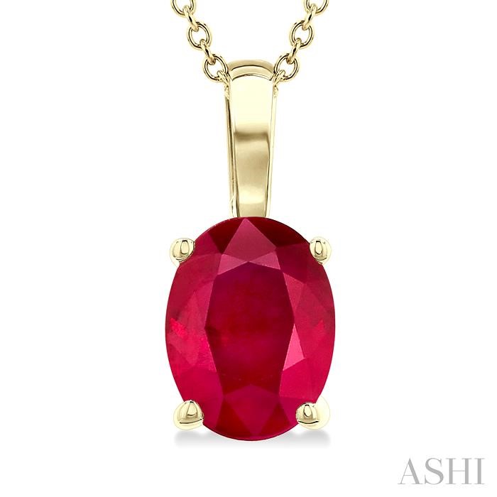 (319) 752-31967X5 MM Oval Shape Ruby Precious Gemstone Solitaire Pendant With Chain in 14K Yellow Gold