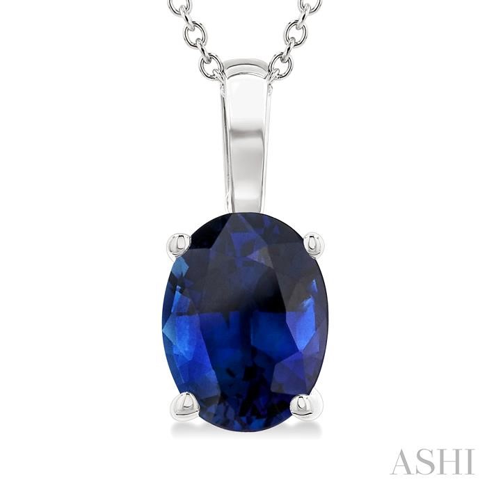 (319) 752-31967X5 MM Oval Shape Sapphire Precious Gemstone Solitaire Pendant With Chain in 14K White Gold