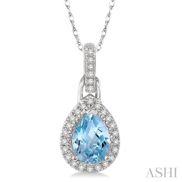 (319) 752-31967x5 MM Pear Shape Aquamarine and 1/10 Ctw Round Cut Diamond Pendant in 14K White Gold with Chain