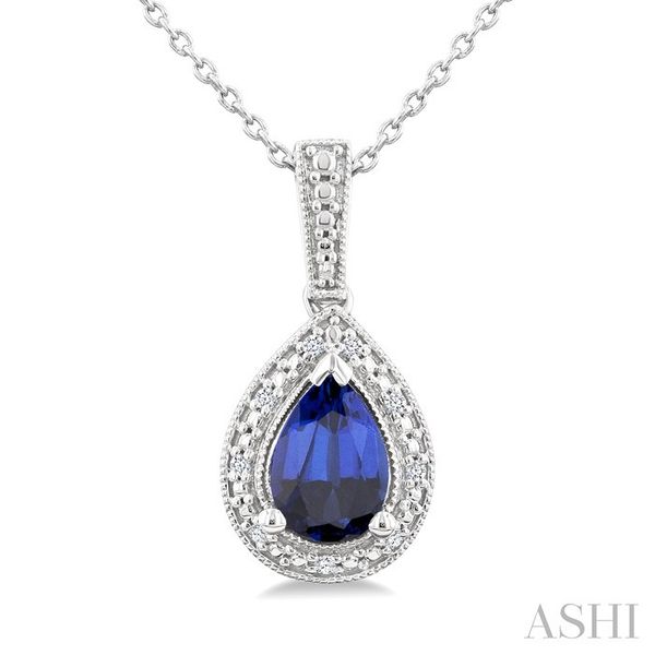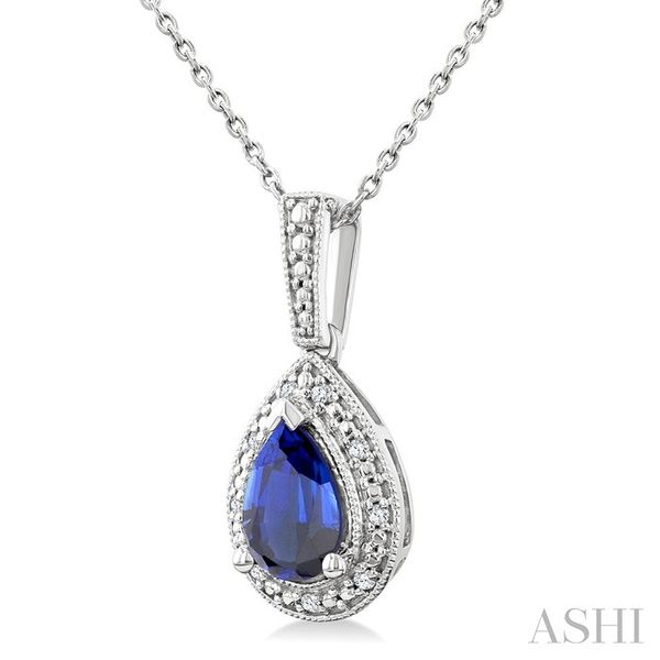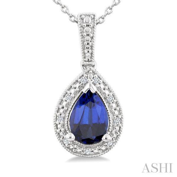 7X5 MM Pear Shape Lab-Created Sapphire and 1/50 Ctw Round Cut Diamond Precious Pendant With Chain in Sterling Silver Image 3 Becker's Jewelers Burlington, IA