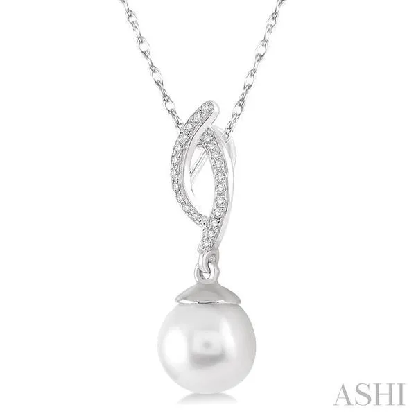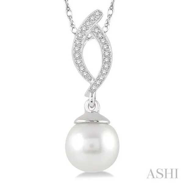 (319) 752-31967x7 MM Round Cut Cultured Pearl and 1/20 Ctw Round Cut Diamond Pendant in 10K White Gold with Chain