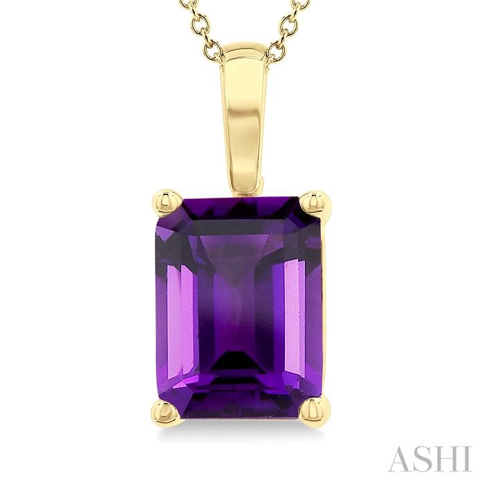 (319) 752-31968X6 MM Octagon shape Amethyst Semi-Precious Solitaire Pendant With Chain in 14K Yellow Gold