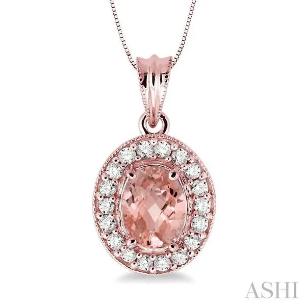 (319) 752-31968x6 MM Oval Cut Morganite and 1/3 Ctw Round Cut Diamond Pendant in 14K Rose Gold with Chain
