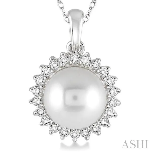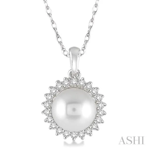 (319) 752-31968x8 MM Round Shape Cultured Pearl and 1/5 Ctw Round Cut Diamond Pendant in 14K White Gold with Chain
