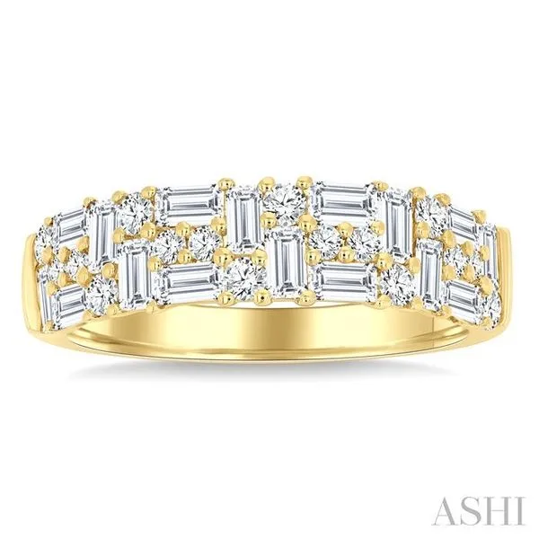 (319) 752-31961 1/10 Ctw Asymmetrical Baguette and Round Cut Diamond Fashion Band in 14K Yellow Gold