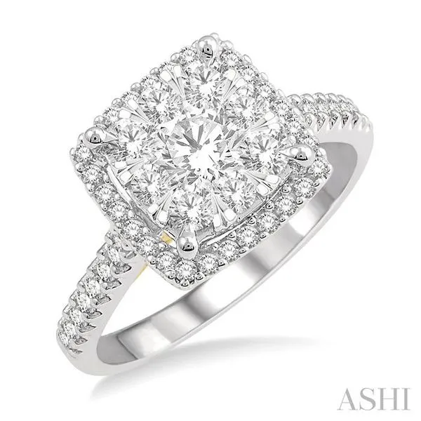 (319) 752-31961 1/10 Ctw Round Diamond Lovebright Halo Engagement Ring in 14K White and Yellow Gold