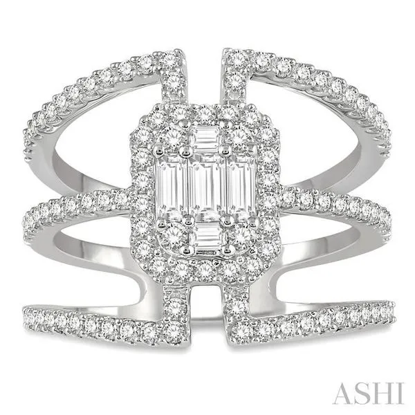 (319) 752-31961 1/10 Ctw Triple Ring Baguette & Round Cut Diamond Ring in 14K White Gold