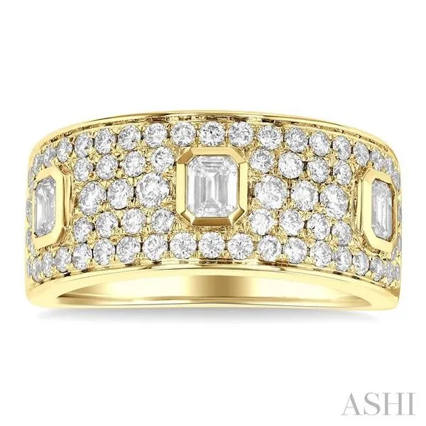 (319) 752-31961 1/2 Ctw 3-Stone Emerald and Round Cut Diamond Fashion Wide Band in 14K Yellow Gold